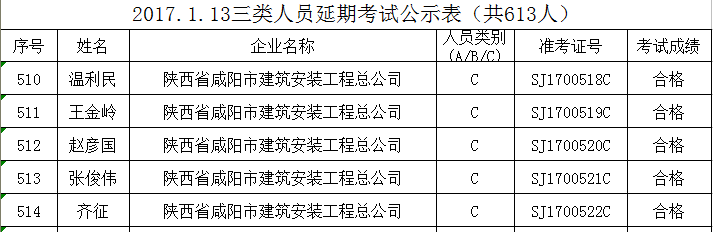 對于使用質(zhì)量安全管理信息平臺進(jìn)行延期申請考試報(bào)名并且成績合格者,將視為三類人員證書延期合格,不再需要進(jìn)行書面申請。請所在企業(yè)在該三類人員有效期截止的前一個月在陜西建設(shè)網(wǎng)的公告公示欄目中進(jìn)行查詢,并按照公布的結(jié)果,按要求辦理三類人員證書延期蓋章手續(xù)。